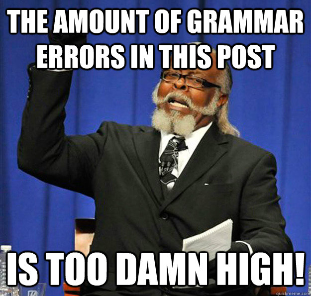 lol that picture should have said "The amount of grammar mistakes in this thread is to damn high!" lolgetit?